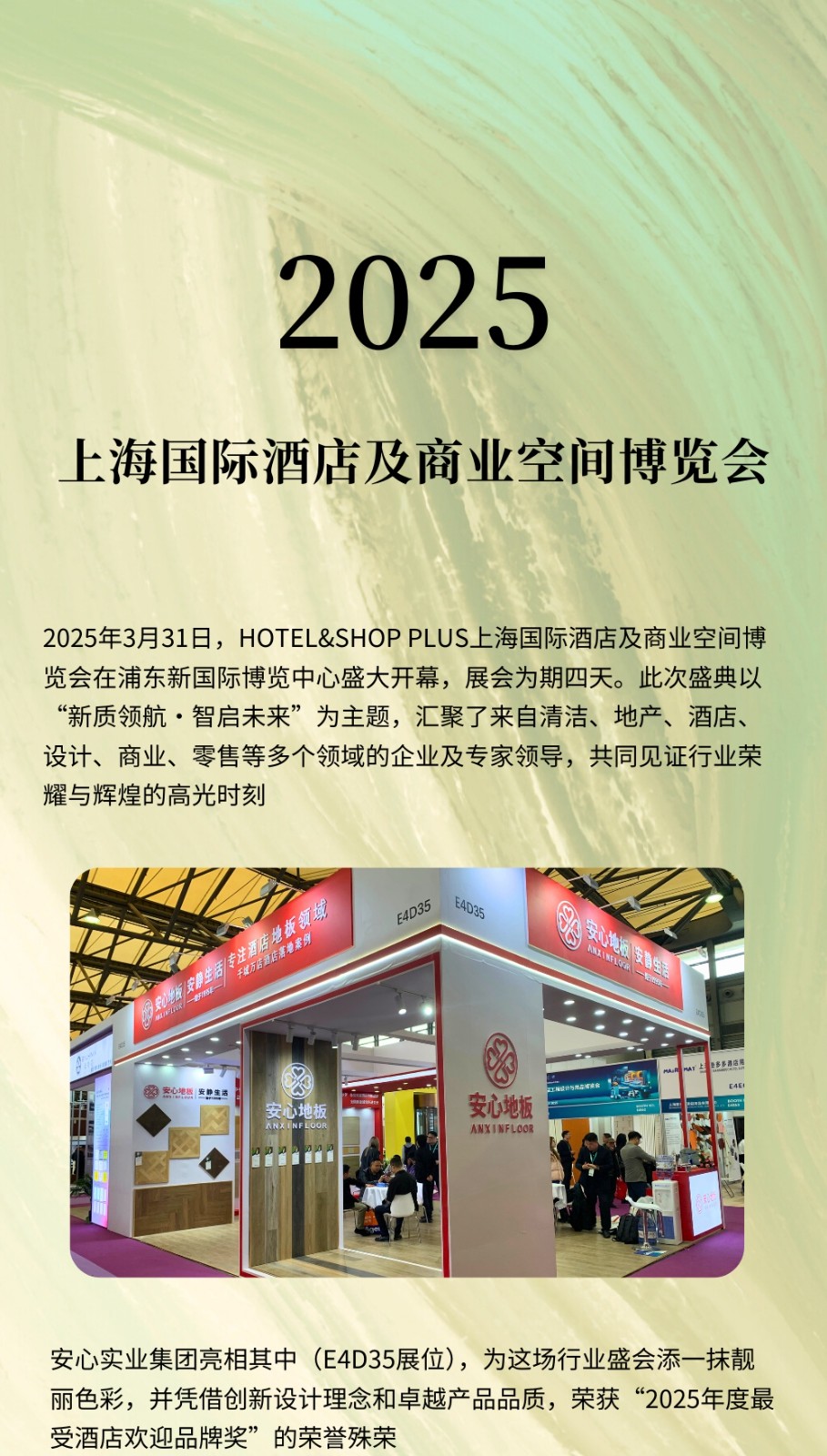 2025年3月31日,HOTEL&SHOP PLUS上海國際酒店及商業空間博覽會在浦東新國際博覽中心盛大開幕,展會為期四天。